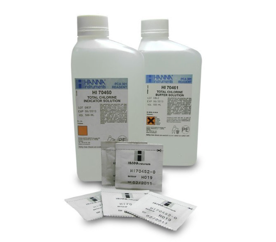 PCA分析控制器專用總氯DPD試劑套裝,內含:HI70460 總氯指示劑,規格:500 mL;HI70461 總氯緩沖溶液,規格:500 mL;HI70452 DPD試劑,5袋粉劑"/>