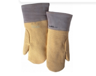 熔巖盾抗極高溫手套長38cm,采用高拉力、阻燃的杜邦Kevlar 4線防火線縫制,手袖采用抗割及耐磨損的牛二層芯皮,手掌則采用746g/m2芳族聚酰胺合成纖維制成,內層則是由高效隔熱的羊絨里層以及防火阻燃100%純棉吸汗內里組成。此款加上活動食指設計,左右手可互用,且能在330°C高溫環境下持續工作或者在538°C超高溫環境下間斷工作。
