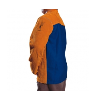 雄蜂王Yellowjacket焊服提供上身清爽舒適,全臂抗燒焊飛濺物,前面由抗火、隔熱又耐磨的牛二層皮制成;背部由305g/m2可洗水的防火阻燃棉布制作,安全舒適;背部清爽透氣。