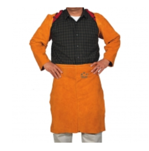由耐用、柔韌的牛二層金黃色頸皮制成,具耐磨、隔熱和抗火性能。此圍裙短小精制,無護胸,經濟實惠,操作靈活輕便,受廣大焊工愛戴。